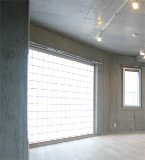 南側一面はガラスブロックです。自然光を部屋全体へ導くので室内を明るくしてくれます。気分も上々、仕事がはかどります。
